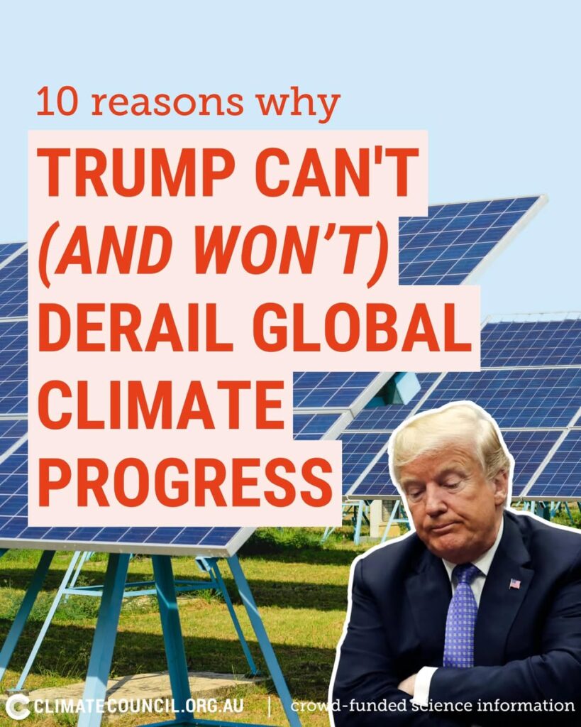 As Trump dials up the climate delay and denial, Australia can keep dialling back the climate pollution that’s overheating our planet and putting our own lives at risk. Continuing to cut climate pollution is in our national interest as it will keep us and our kids safer.