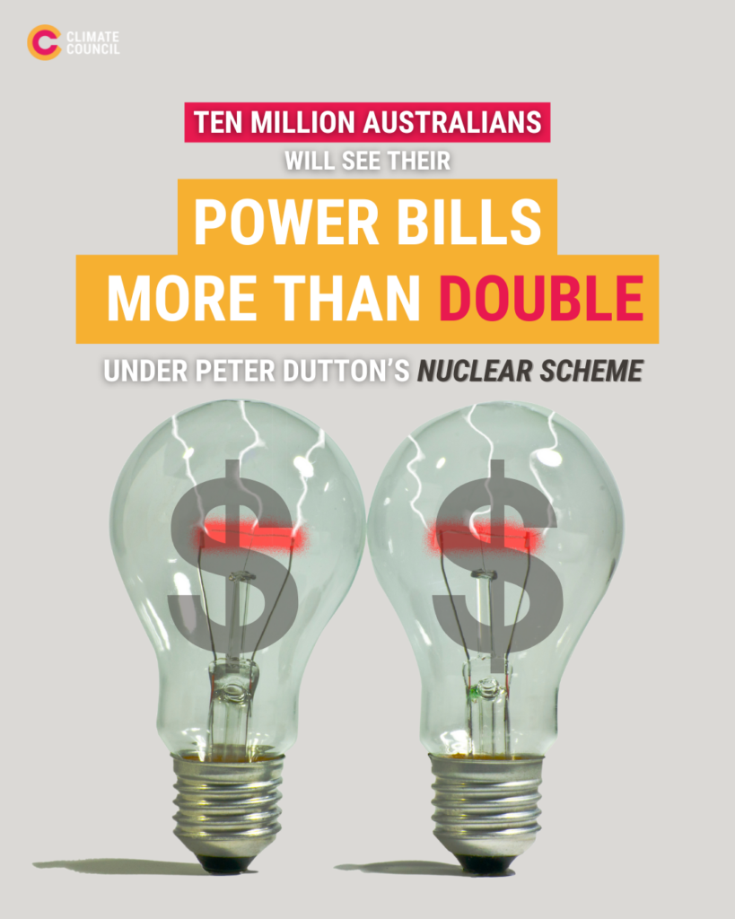 Australians are already being pummelled by worsening climate disasters, and we can’t afford to wait 15-20 years for nuclear reactors to be built. We need a plan to cut climate pollution now and protect our kids’ future, not a delay tactic that will put more Australians in harm’s way.
