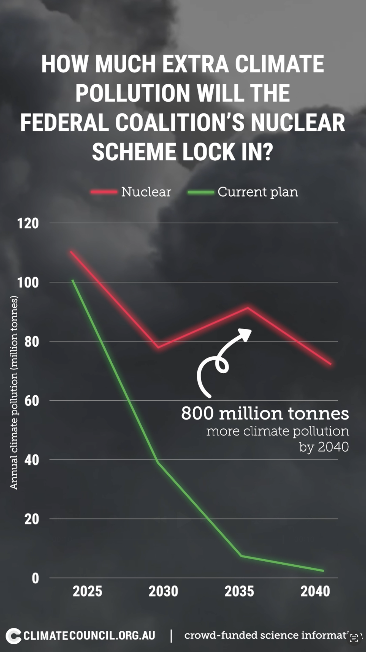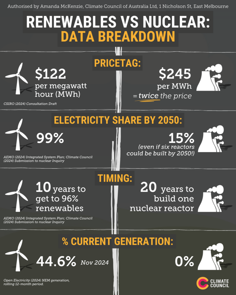 Nuclear energy would be a climate disaster for Australia because it would lock in two billion more tonnes of climate pollution from coal and gas.
