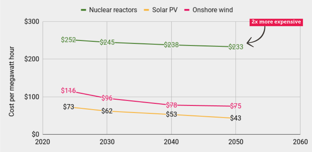 Australia’s national science agency, CSIRO, has found that nuclear energy projects would cost twice as much as renewable power backed by storage. That bad news for our bills. Independent analysis shows that nuclear energy could increase electricity bills by $665 on average, and $972 for a family of four.