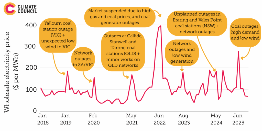 3. Our ageing and unreliable coal-fired power stations are driving severe price spikes
