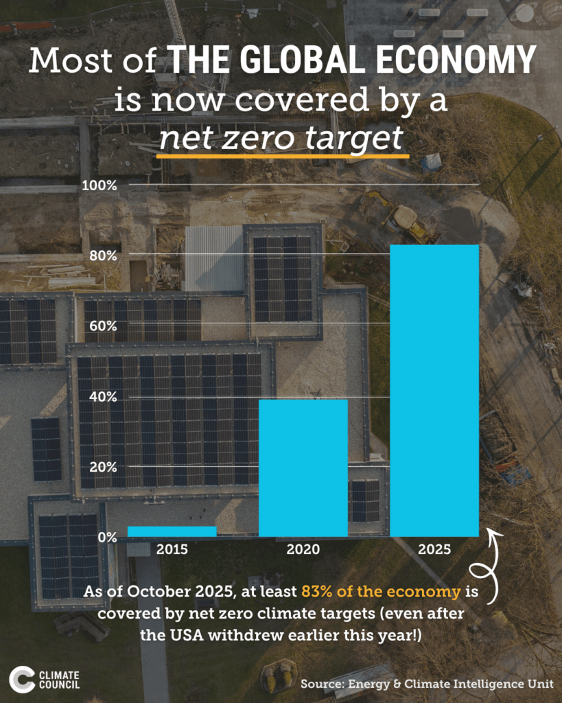 83% of the global economy has a net zero target. Analysis shows that climate targets are becoming more robust over time, covering more sectors and gases. The majority of countries also have targets to increase renewable generation.