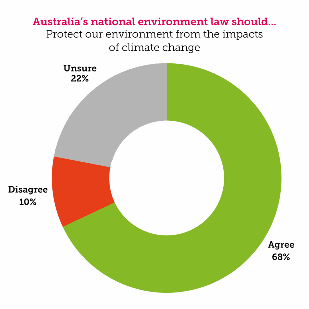 - 68% agree Australia’s national environment law should protect our environment from the impacts of climate change (10% disagree).