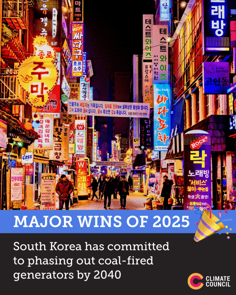 There was twice as much investment in renewable energy compared to fossil fuels. Globally, there is more investment than solar than there is in any other type of energy technology. - South Korea has committed to phasing out most of its coal fired power plants by 2040. It operates the seventh largest coal fleet in the world but the share of coal generation has decreased from 42.5 per cent in 2015 to 30.5 per cent in 2024. As one the world’s top coal importers, and one of Australia’s largest coal customers, this signals a major shift for the industry.