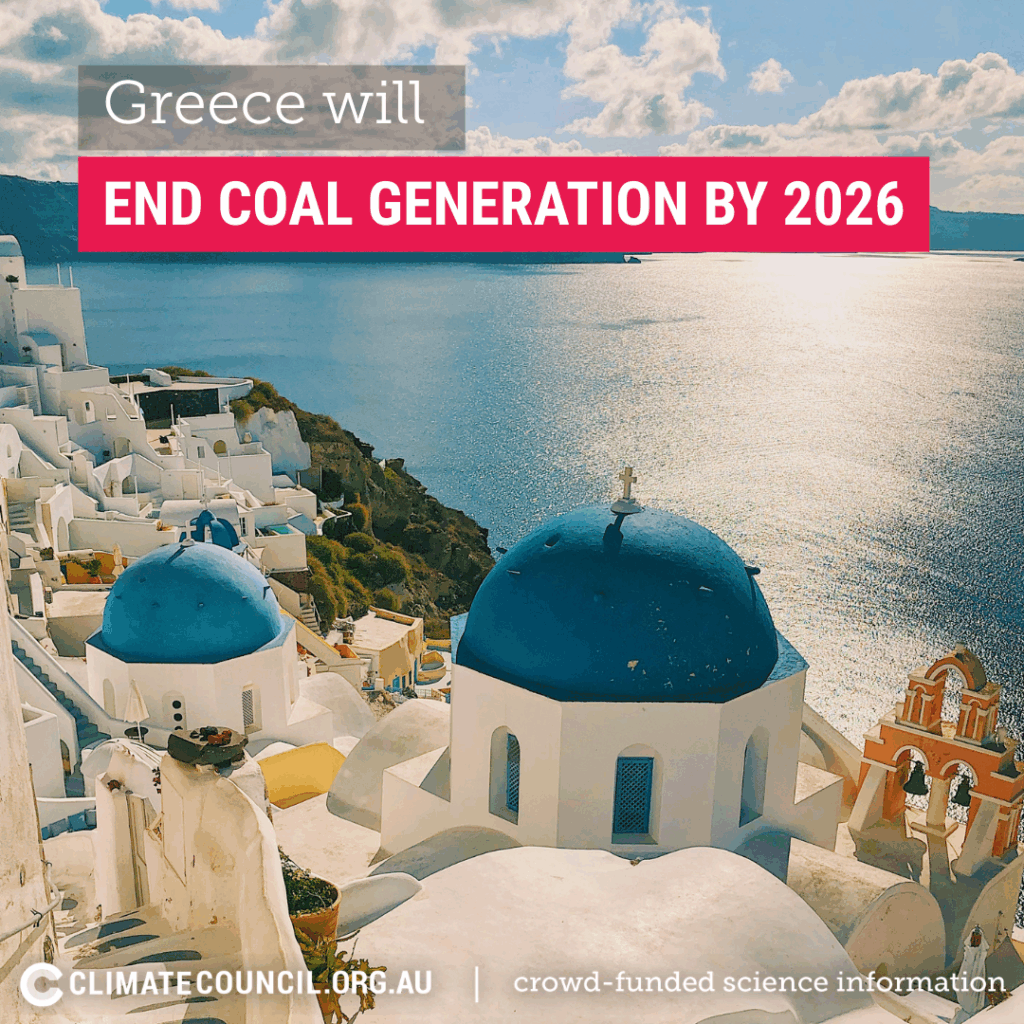 With help from its abundant Mediterranean sunshine, Greece has more than doubled its renewable generation in the past decade. Renewables now make up 50% of its total generation, with nearly 40% from wind and solar. Like Australia, Greece has a target to reach 82% renewable by 2030. As part of this, Greece will end coal generation by 2026.