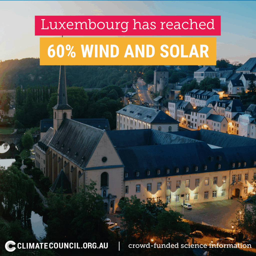 Luxembourg, historically very reliant on fossil fuels, has been rapidly rolling out renewables as part of its plan to cut emissions by 55% by 2030. The country has already reached more than 60% wind and solar power, compared to just 9% a decade ago.