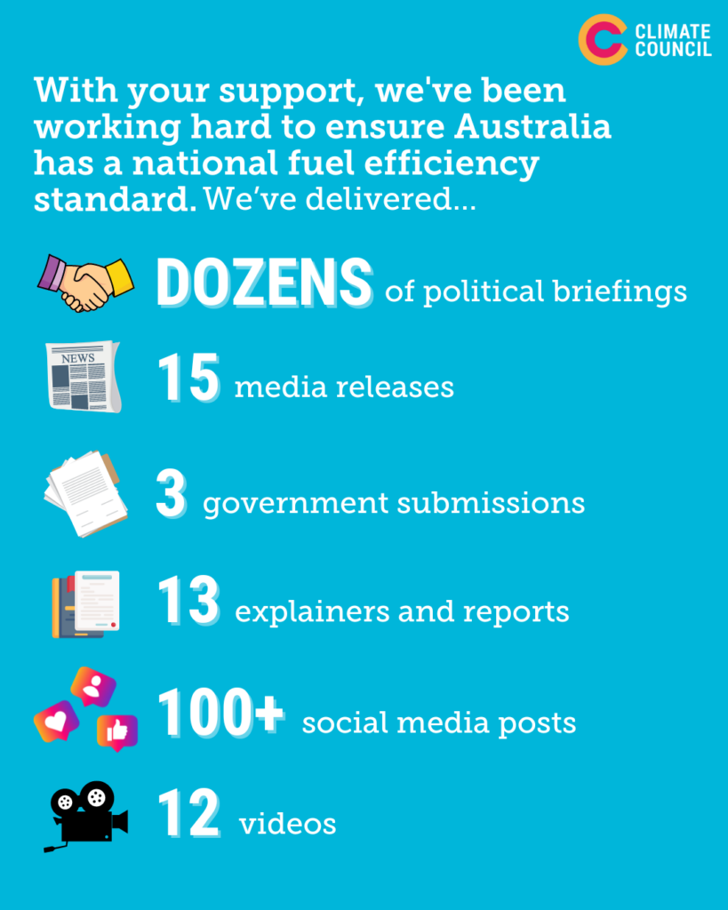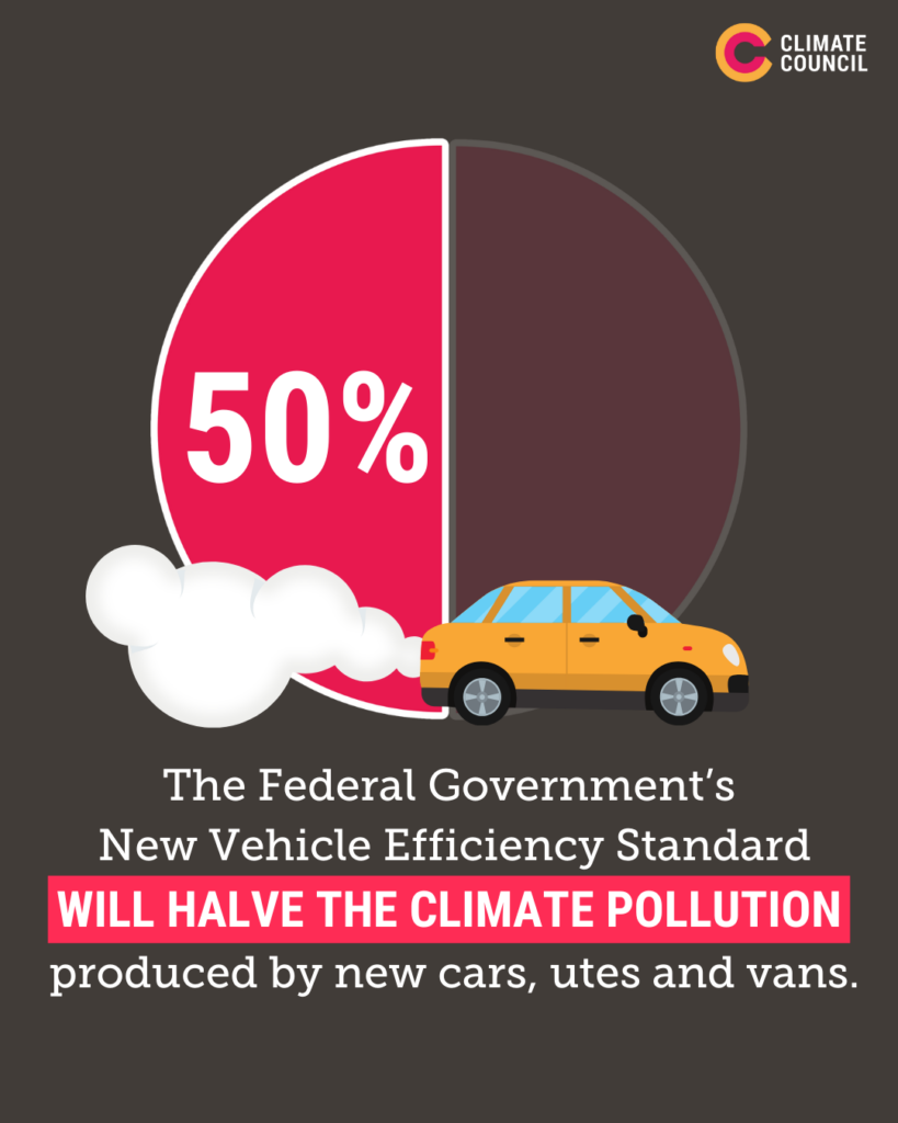 Under this new law, climate pollution produced by new cars, vans and utes will more than halve by the end of the decade, preventing 20 million tonnes of climate pollution. That’s the same amount of pollution produced by every gas-connected home in Australia for more than two years!